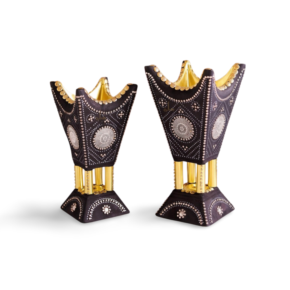 ارتقِ بتجربة التبخير مع المبخرة الملكية بتصميمها الفاخر باللونين الأسود الملكي والذهبي اللامع، حيث تلتقي الأناقة بالكلاسيكية لتكون قطعة فنية تزيّن مجلسك وتمنحك تجربة تبخير لا تُنسى.