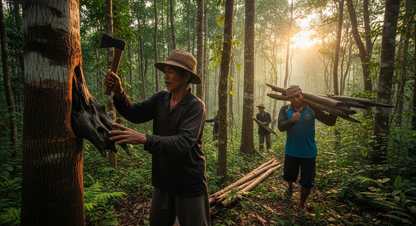 يبدأ تايقر دبل سوبر في غابات فوكوك وكوانج تري، حيث تنمو أشجار العقيل (Aquilaria sinensis) لأكثر من 30 عامًا، مكونة راتنجات بنسبة دهن 40-45%. التزام فيتنام بمعايير CITES خفض الحصاد غير القانوني بنسبة 50% (WWF, 2025)، داعمًا 7,500 مزارع محلي. يُنقع العود لمدة 8-10 أسابيع، ثم يُنقل إلى الرياض وجدة.