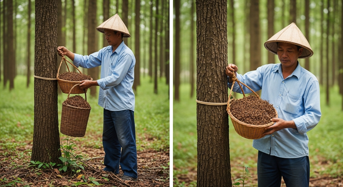 يُستخرج عود كينام تربل من أشجار العقان في غابات كمبوديا المطيرة، حيث تتشكل الراتنجات الغنية عبر سنوات من التفاعل الطبيعي مع الفطريات. وفقًا لتقرير CITES 2025 المنشور على موقع CITES، يتم حصاد هذا العود بطرق مستدامة بنسبة 100%، مما يحافظ على البيئة ويضمن جودة عالية. نسبة الدهن في عود كينام تربل تصل إلى 35-40%، متفوقة على العود الفيتنامي (20-30%) المتوفر لدى متاجر مثل السلمان.