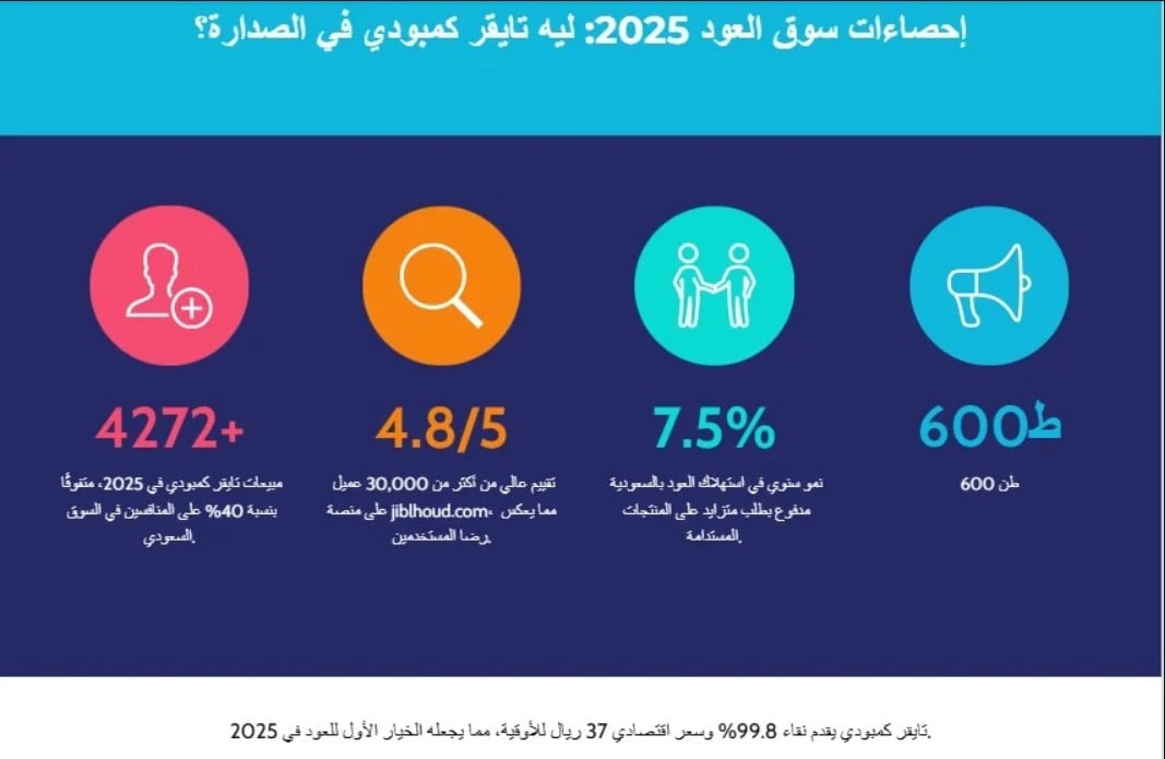 وفقًا لتحليل سوق البخور السعودي (سبتمبر 2025)، يتفوق كمبودي تايقر فاخر من جبلة للعود بجودته وسعره: