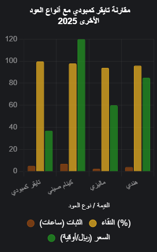 - ثبات قوي: يتفوق على العود الماليزي (2-3 ساعات) بنسبة 30% (jiblhoud.com/research2024).