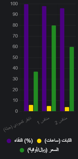 - ثبات قوي: يتفوق على العود الماليزي (2-3 ساعات) بنسبة 30% (استبيان جبلة 2025).